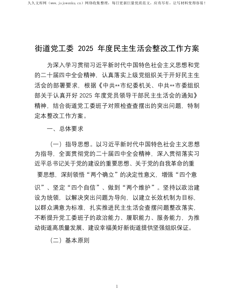 首页公文大全民主生活会街道党工委2025年度民主生活会整改工作方案
