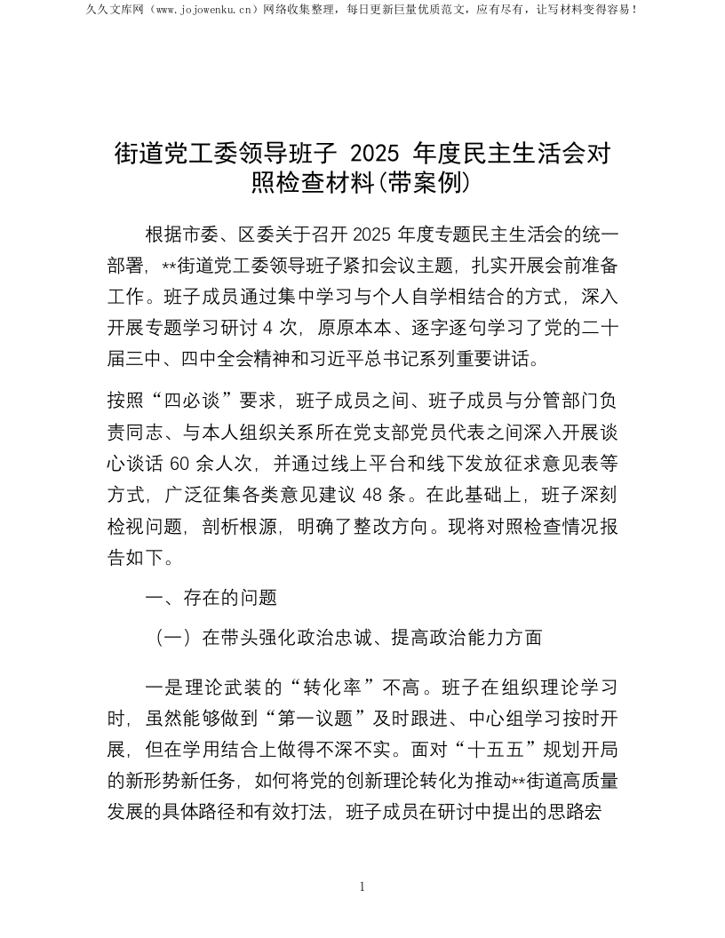 街道党工委领导班子2025年度民主生活会对照检查材料(带案例)