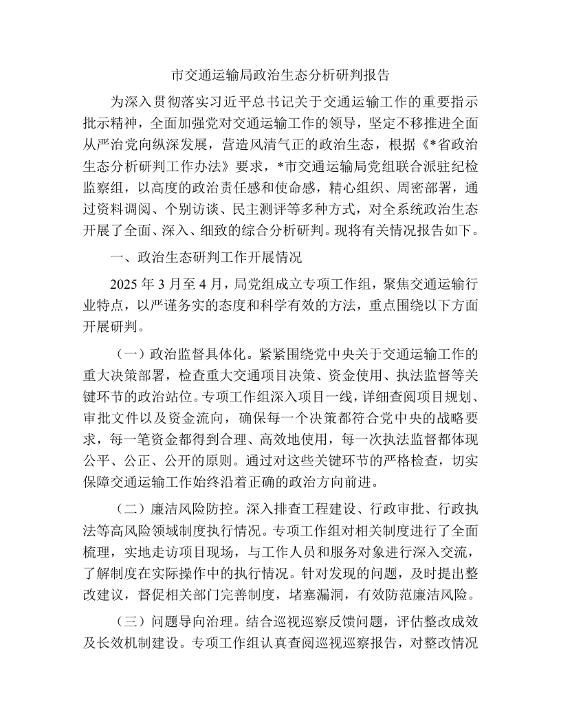 政治生态分析研判报告:市交通运输局政治生态分析研判报告