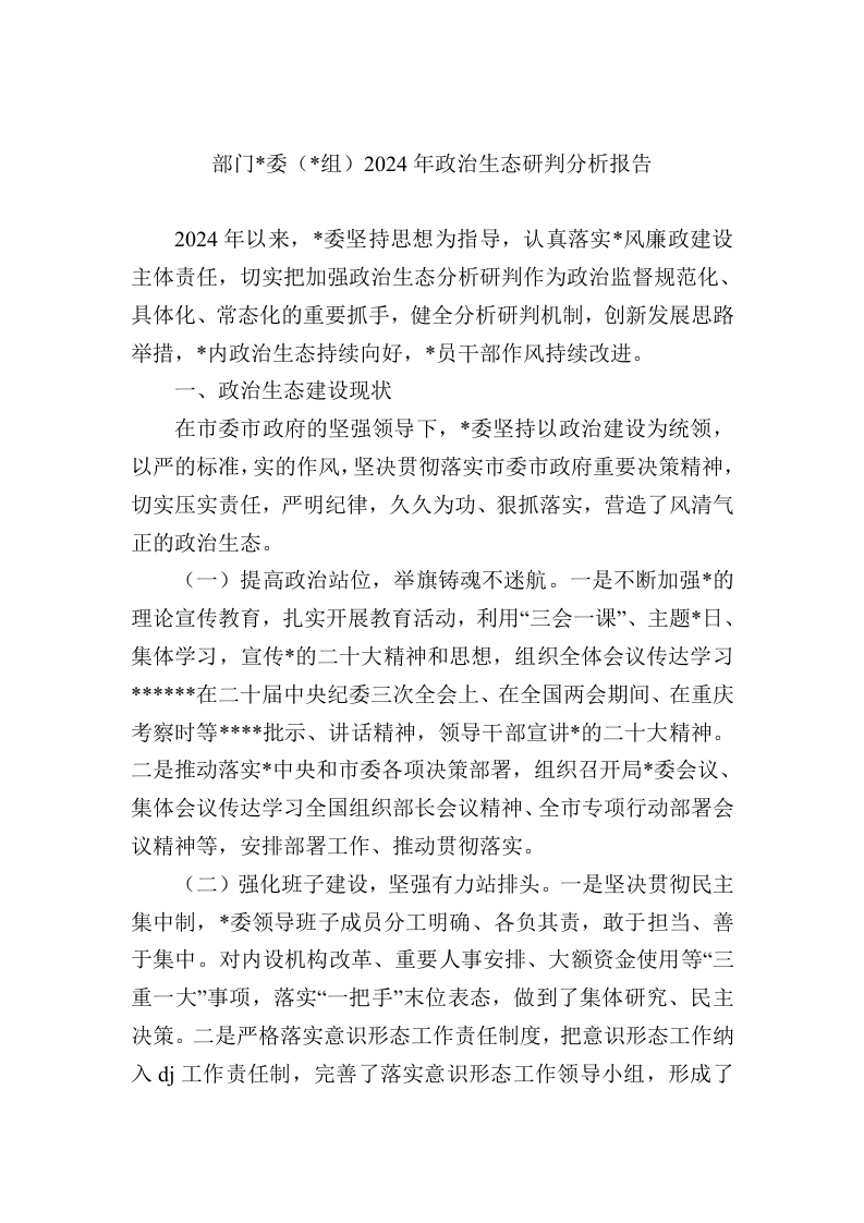 政治生态研判分析报告:部门2024年政治生态研判分析报告