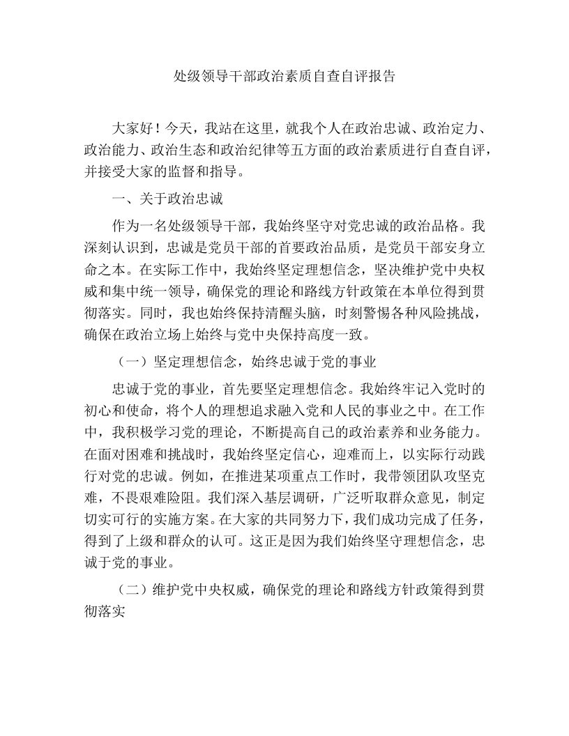 政治素质自查自评报告:处级领导干部政治素质自查自评报告