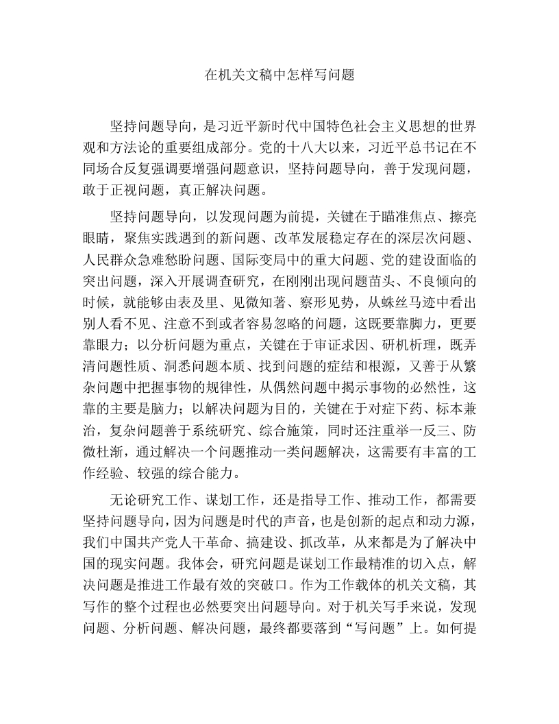 公文写作方法和技巧:在机关文稿中怎样写问题