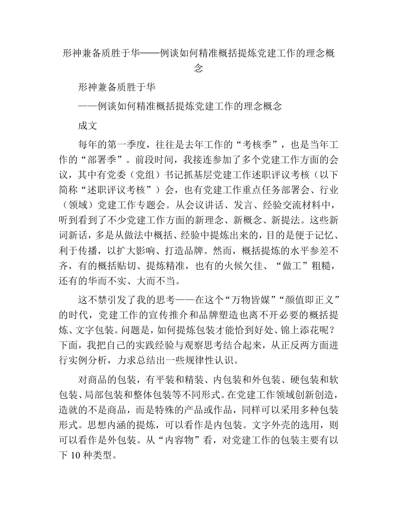 公文写作技巧:形神兼备 质胜于华——例谈如何精准概括提炼党建工作的理念概念