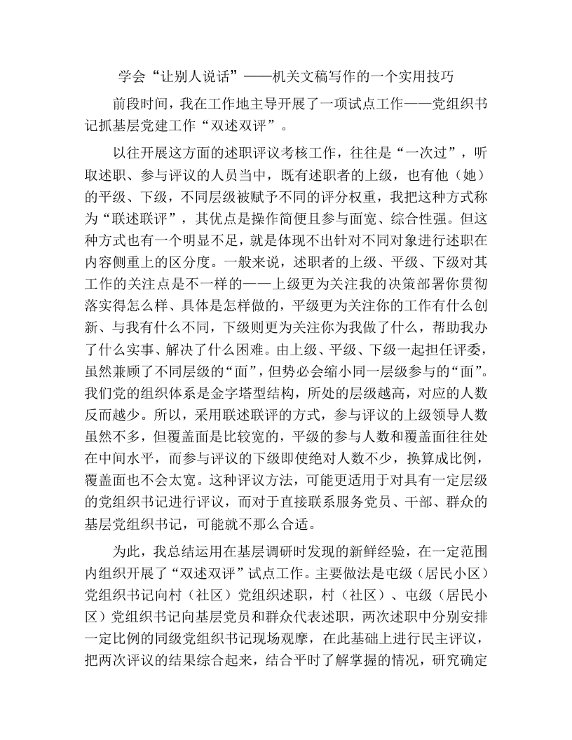 首页写作提升写作技巧攻略机关文稿写作实用技巧:学会“让别人说话”