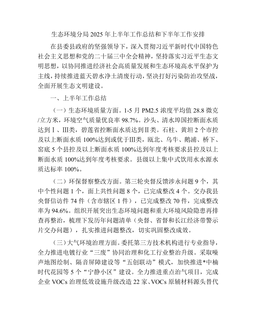 生态环境分局2025年上半年工作总结:生态环境分局2025年上半年工作总结和下半年工作安排