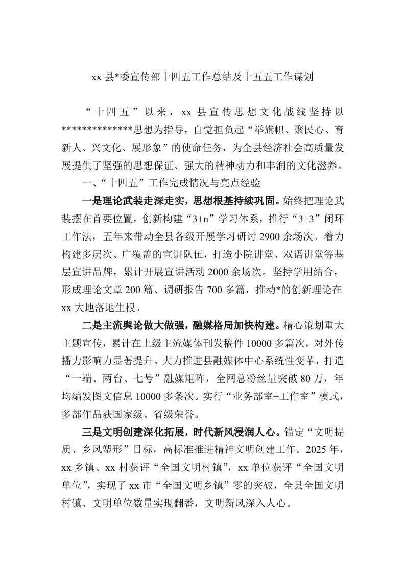 十四五工作总结及十五五工作谋划:县委宣传部十四五工作总结及十五五工作谋划