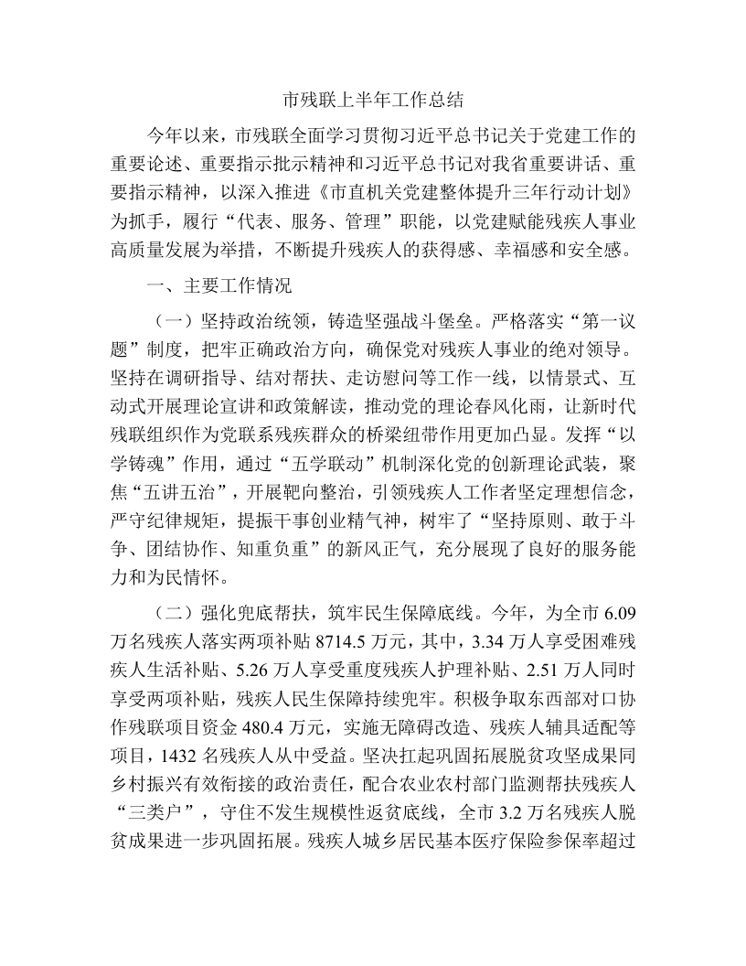 市残联上半年工作总结:市残联上半年工作总结