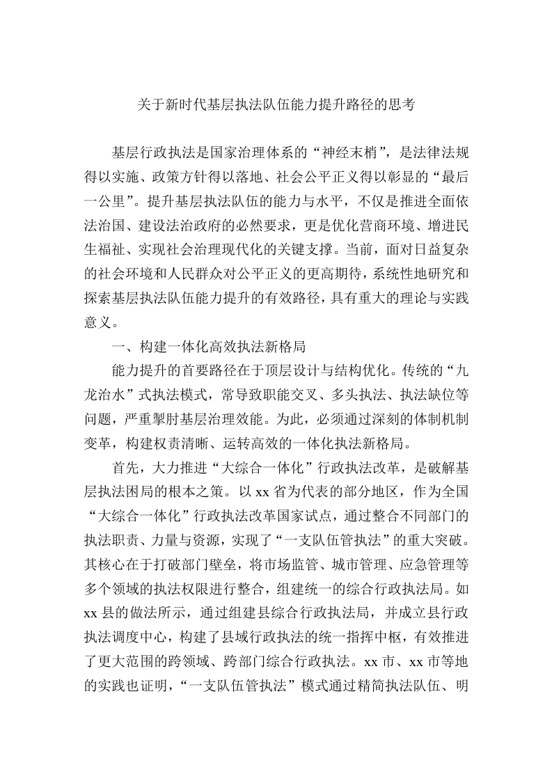 新时代基层执法队伍能力提升路径与思考:关于新时代基层执法队伍能力提升路径的思考