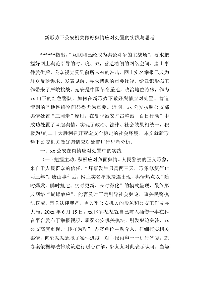 新形势公安舆情应对处置实践与思考:新形势下公安机关做好舆情应对处置的实践与思考