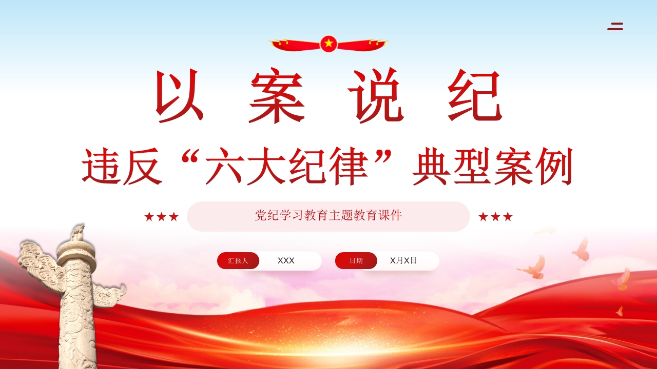 首页PPT课件及模板党课PPT课件【8.1】违反六大纪律典型案例学习:以案说纪违反六大纪律典型案例学习教育课件PPT