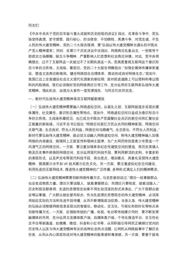 在全市网络舆情工作培训会上的党课辅导报告