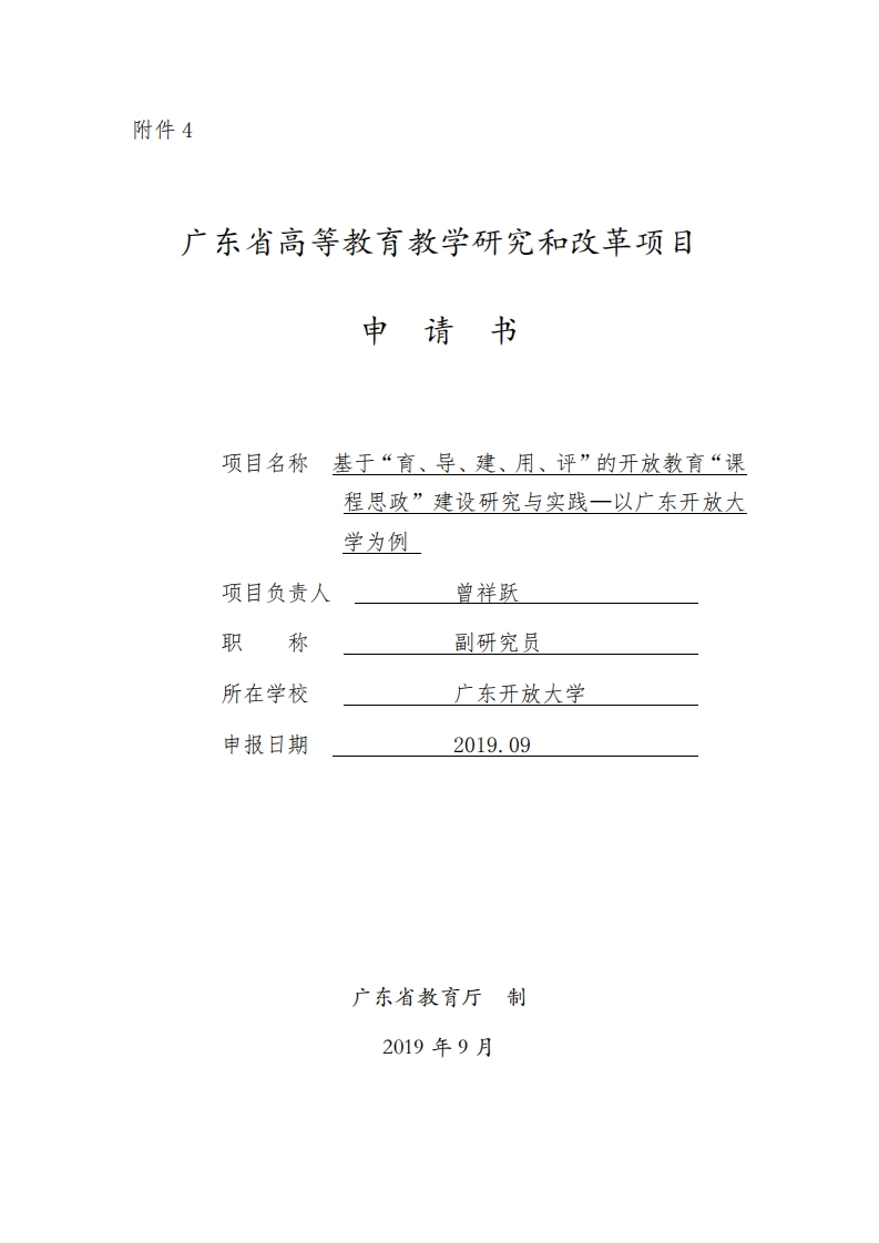 首页高等教育教改课题基于“育、导、建、用、评”的开放教育的课程思政建设研究与实践2019