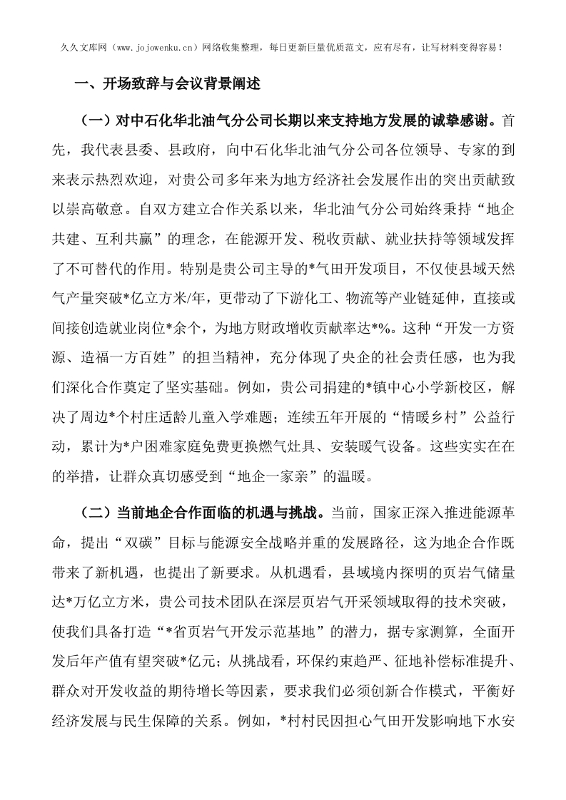 副县长与中石化华北油气分公司地企座谈会交流谈话提纲