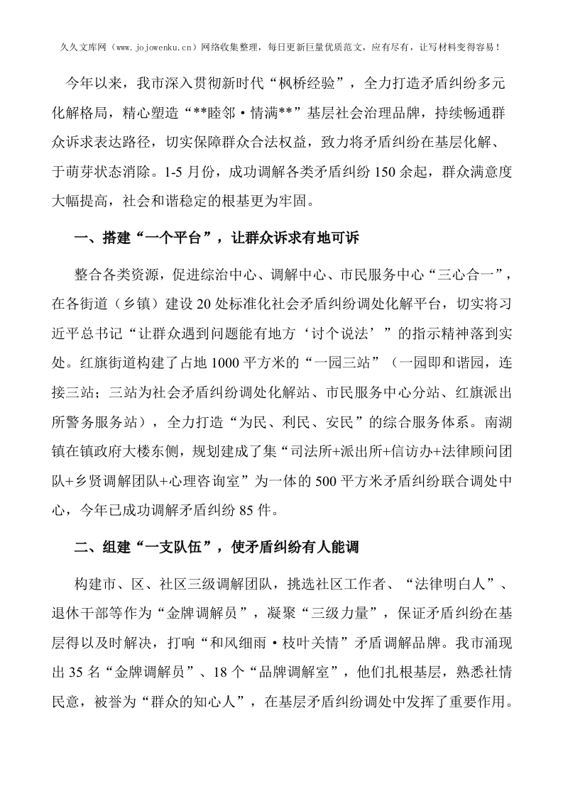 经验交流:“五个一”搭建社区矛盾纠纷化解新渠道