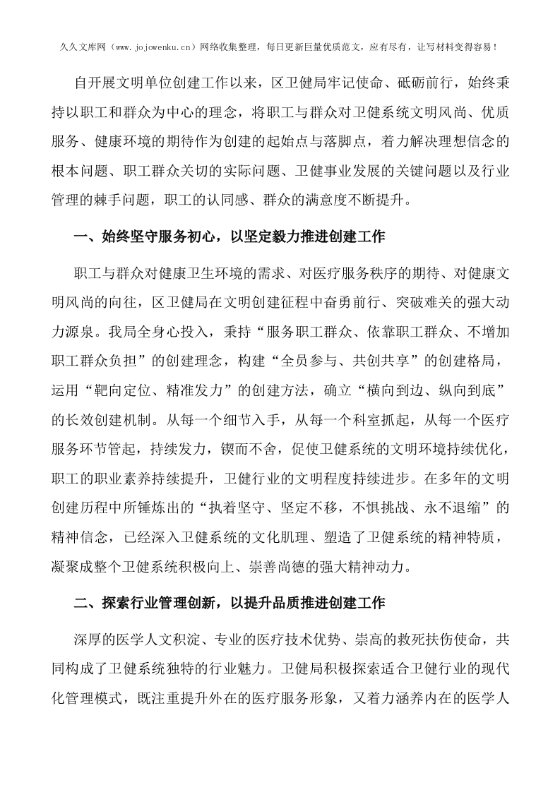 首页公文大全品牌案例经验创新创建卫健局创建文明单位经验交流材料