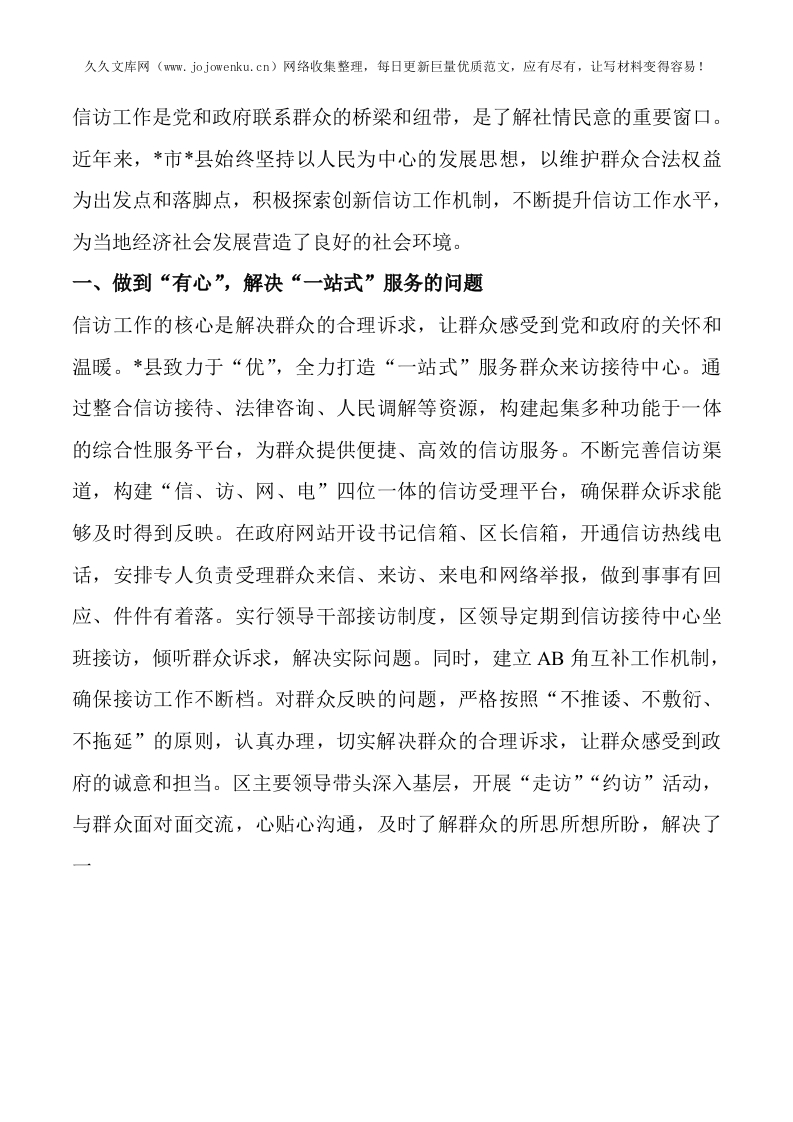 信访经验材料:扎实做好新时代信访工作 维护社会和谐稳定