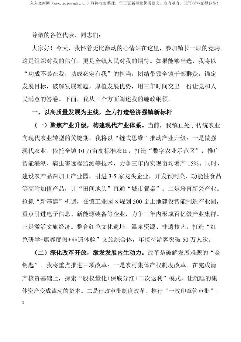 首页公文大全讲话发言演讲2025年竞聘镇长演讲稿