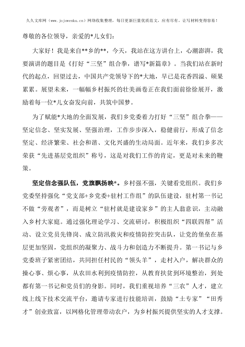 演讲稿:打好“三坚”组合拳,谱写云岭新篇章