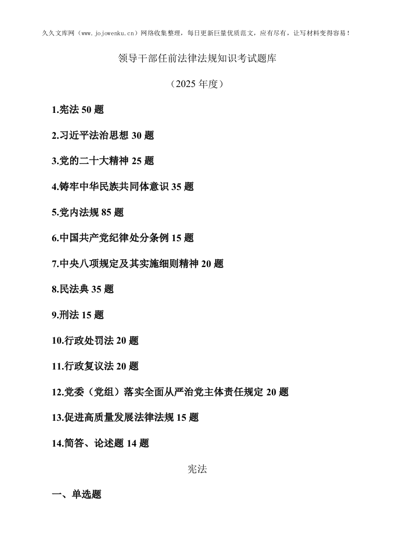 首页公考遴选及体制运行公考遴选领导干部任前法律法规知识考试题库