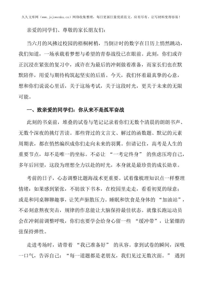 首页公文大全主持辞及其他公文贺信致全县高考考生及家长的一封信
