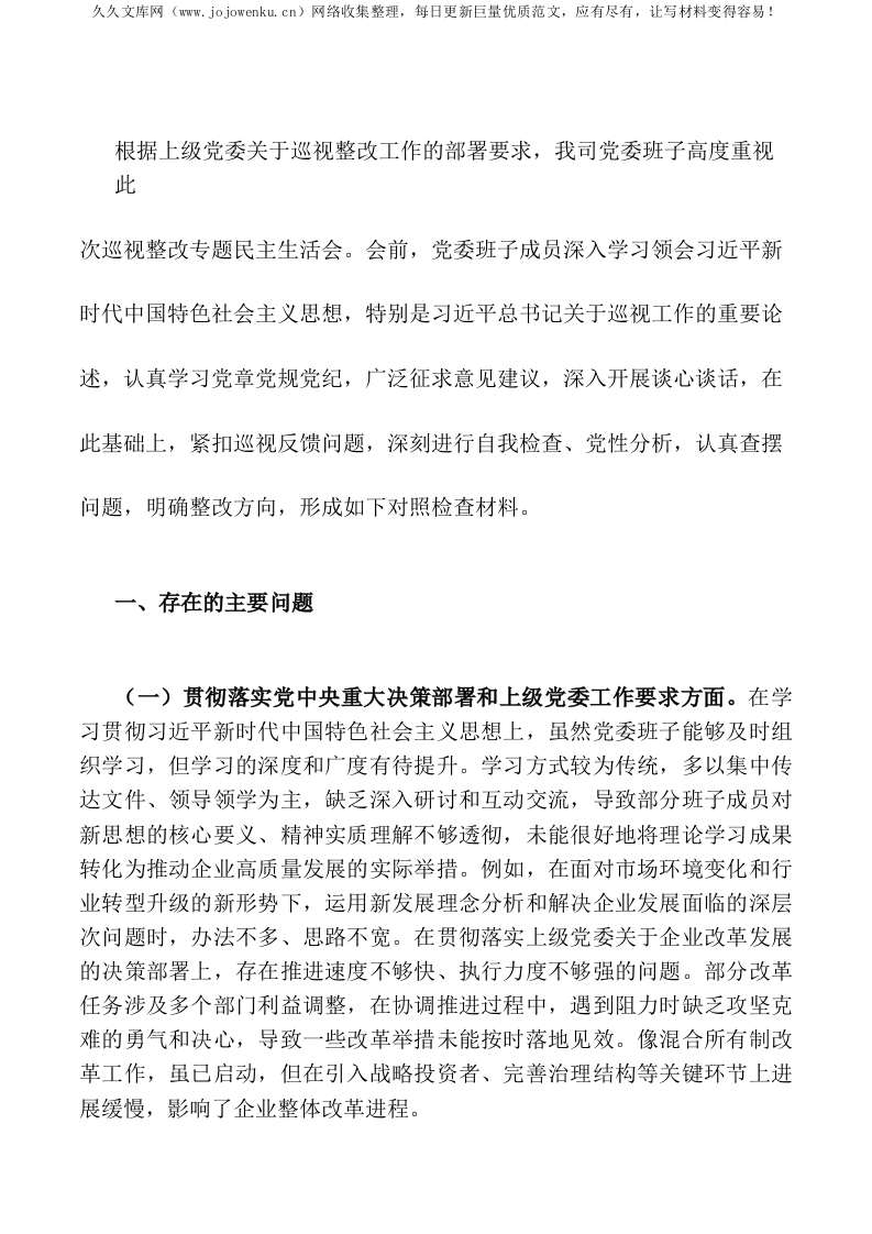 首页公文大全对照检查2025 年企业党委班子巡视整改专题民主生活会对照检查材料