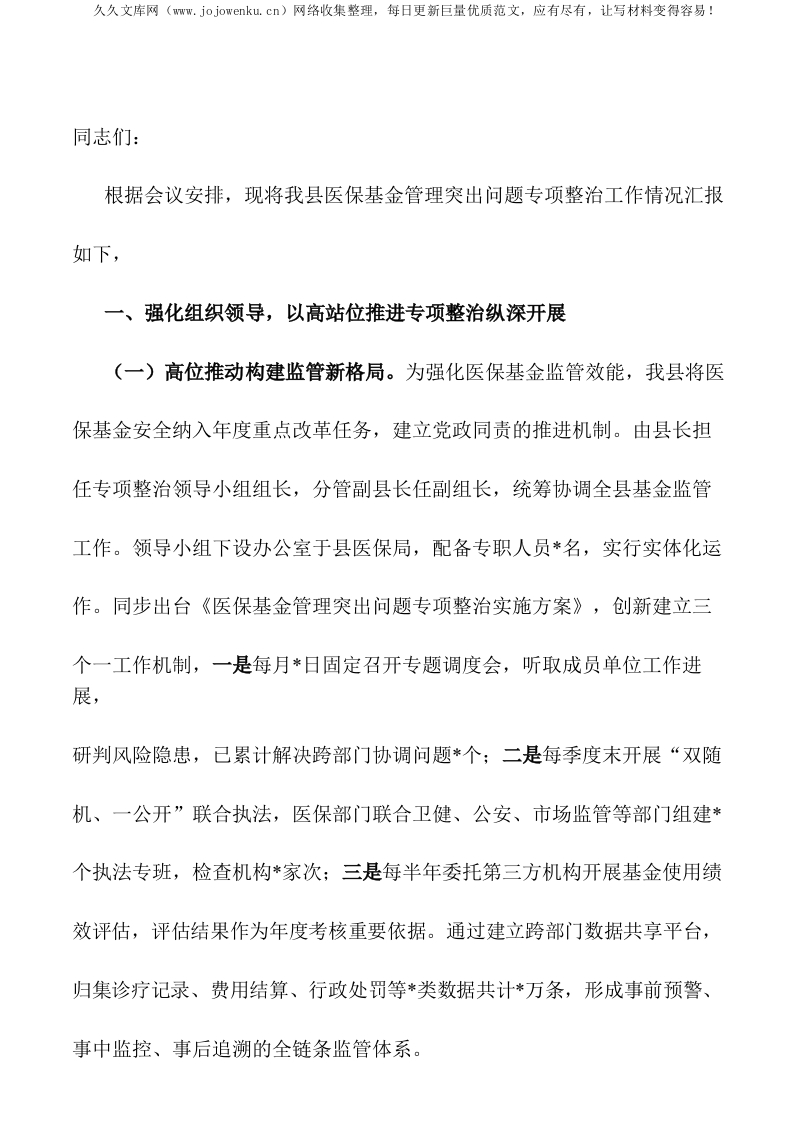首页公文大全总结报告汇报县医保基金管理突出问题专项整治工作汇报