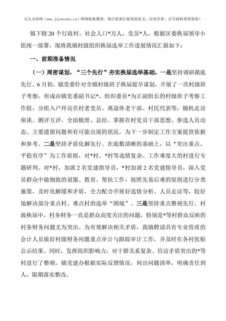 首页公文大全总结报告汇报镇关于村级组织换届选举工作进展情况汇报