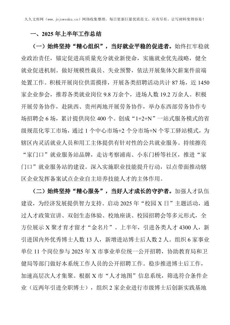首页公文大全计划方案、要点区人社局2025年上半年工作总结和下半年工作计划