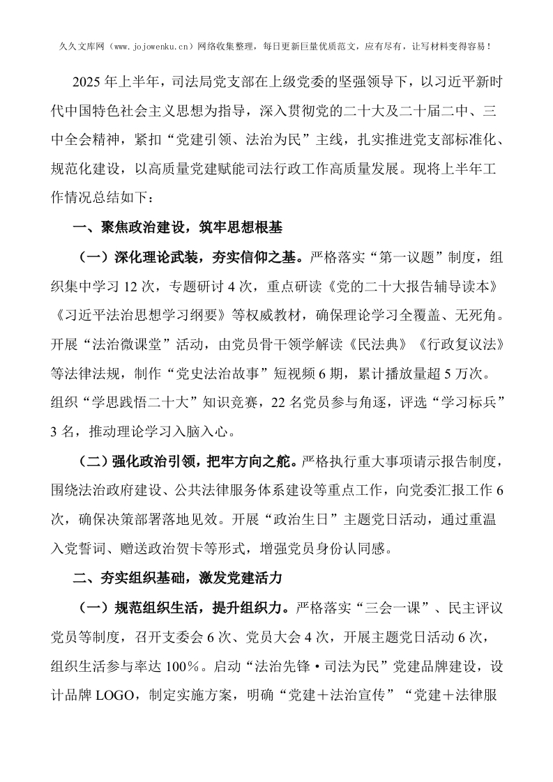 首页公文大全计划方案、要点司法局党支部2025年上半年工作总结和下半年工作计划
