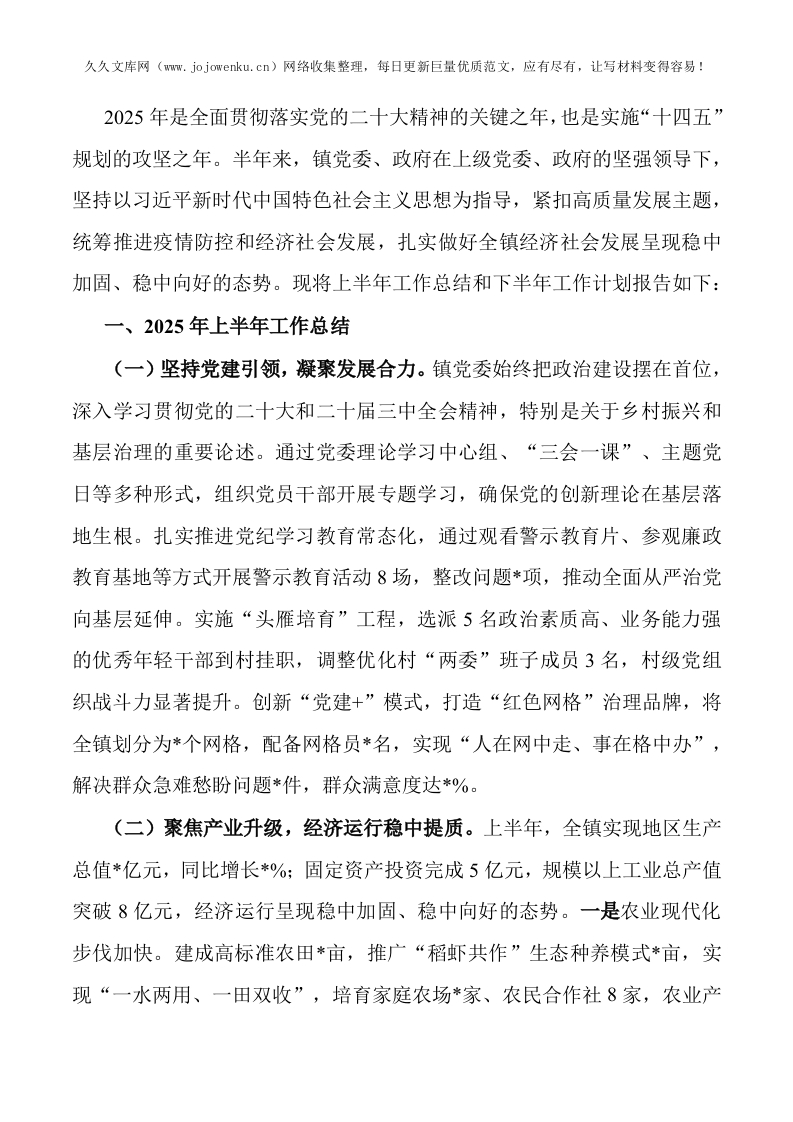 首页公文大全计划方案、要点镇政府2025年上半年工作总结和下半年工作计划