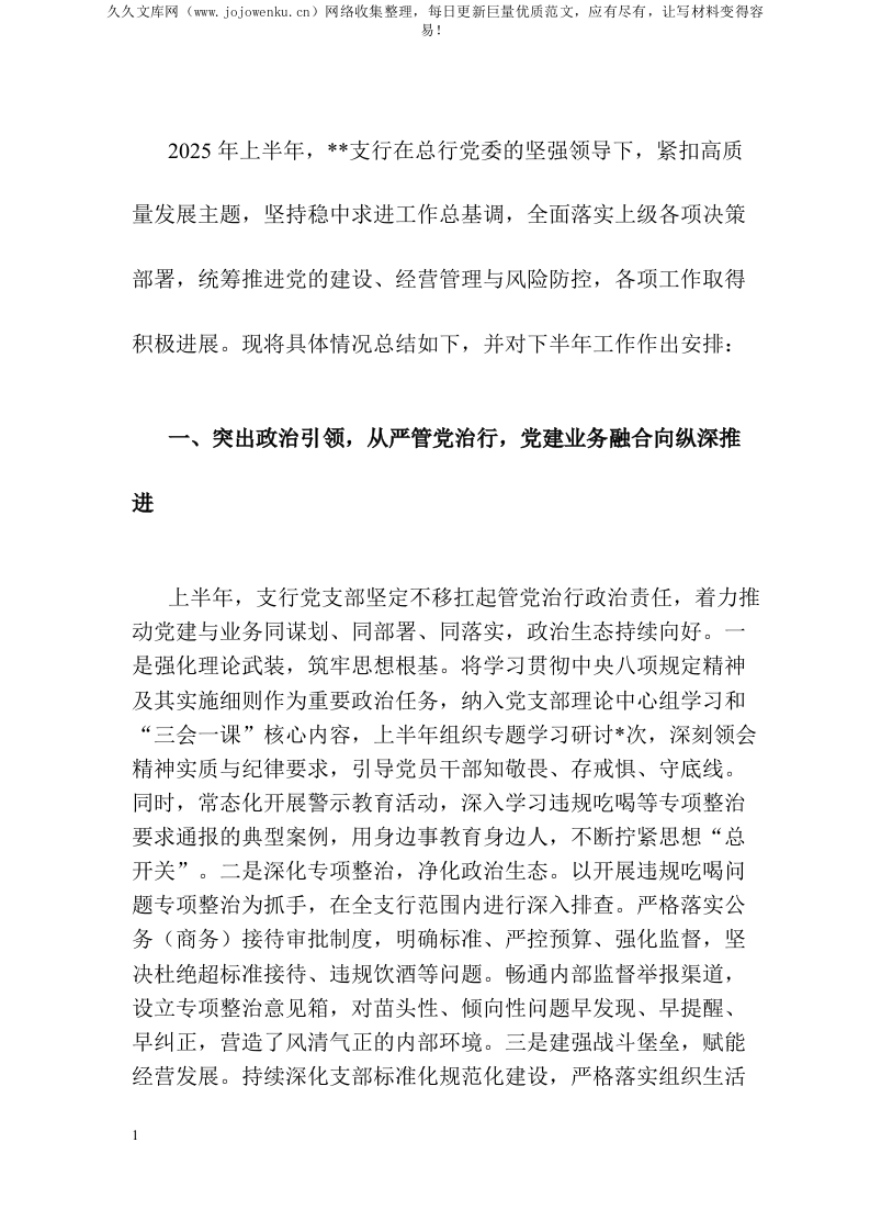 首页公文大全计划方案、要点支行2025年上半年工作总结暨下半年工作计划