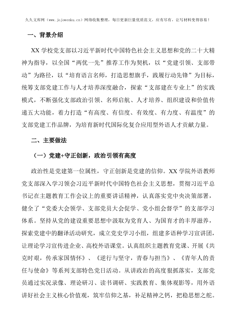 学校党支部经验做法:推行“党建+”打造“五度”标杆党支部