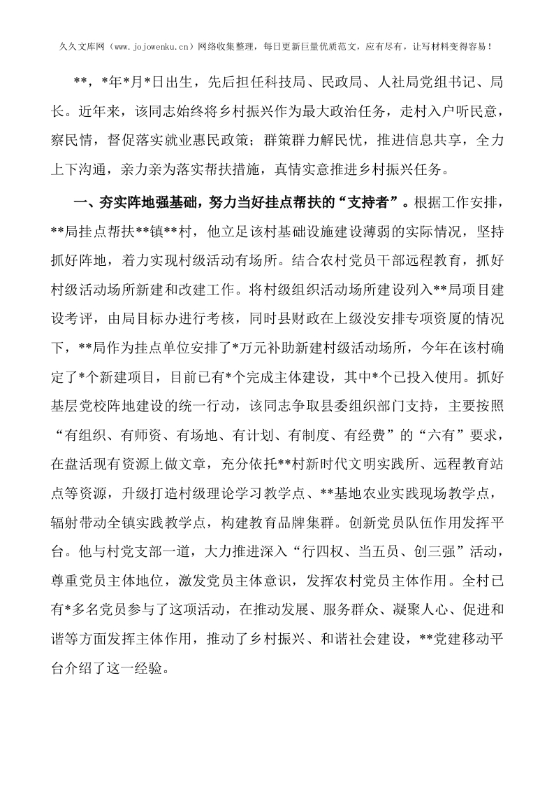 2025年党员干部乡村振兴先进个人事迹材料