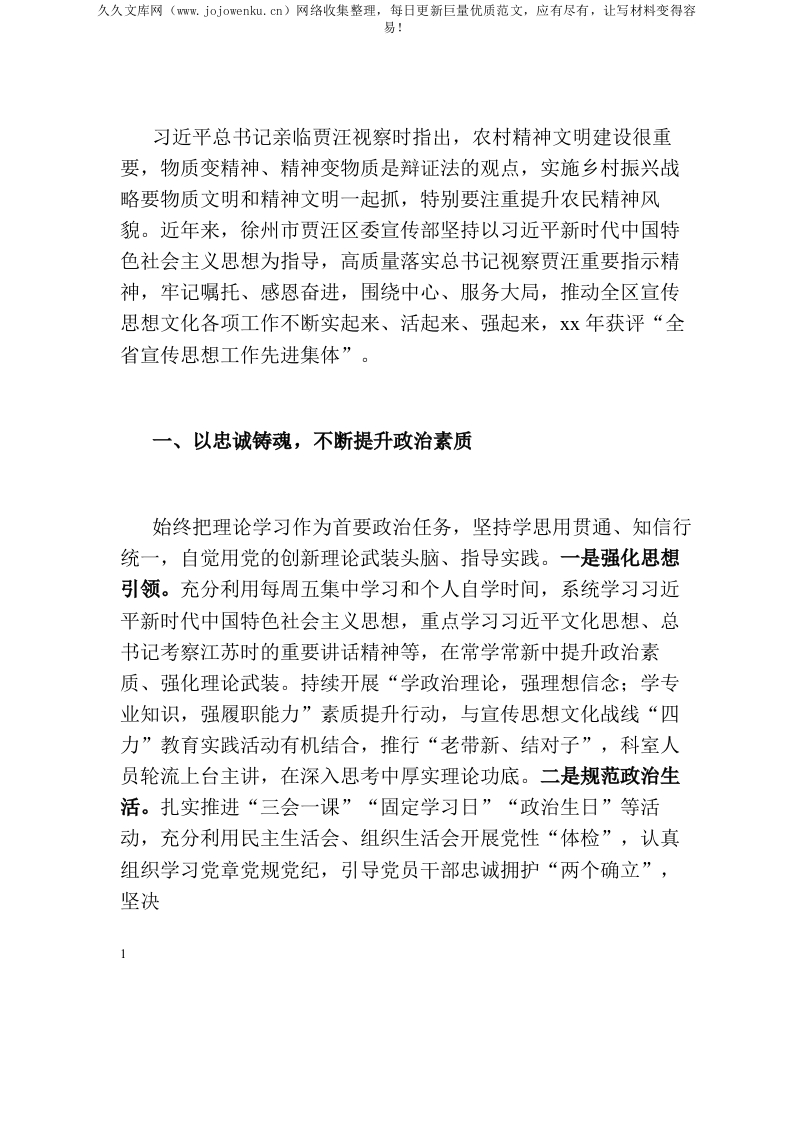 某区委宣传部评选全省“人民满意的公务员集体”事迹材料