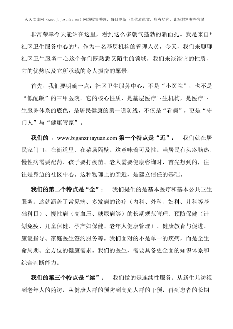 社区医院欢迎医学见习生的演讲稿
