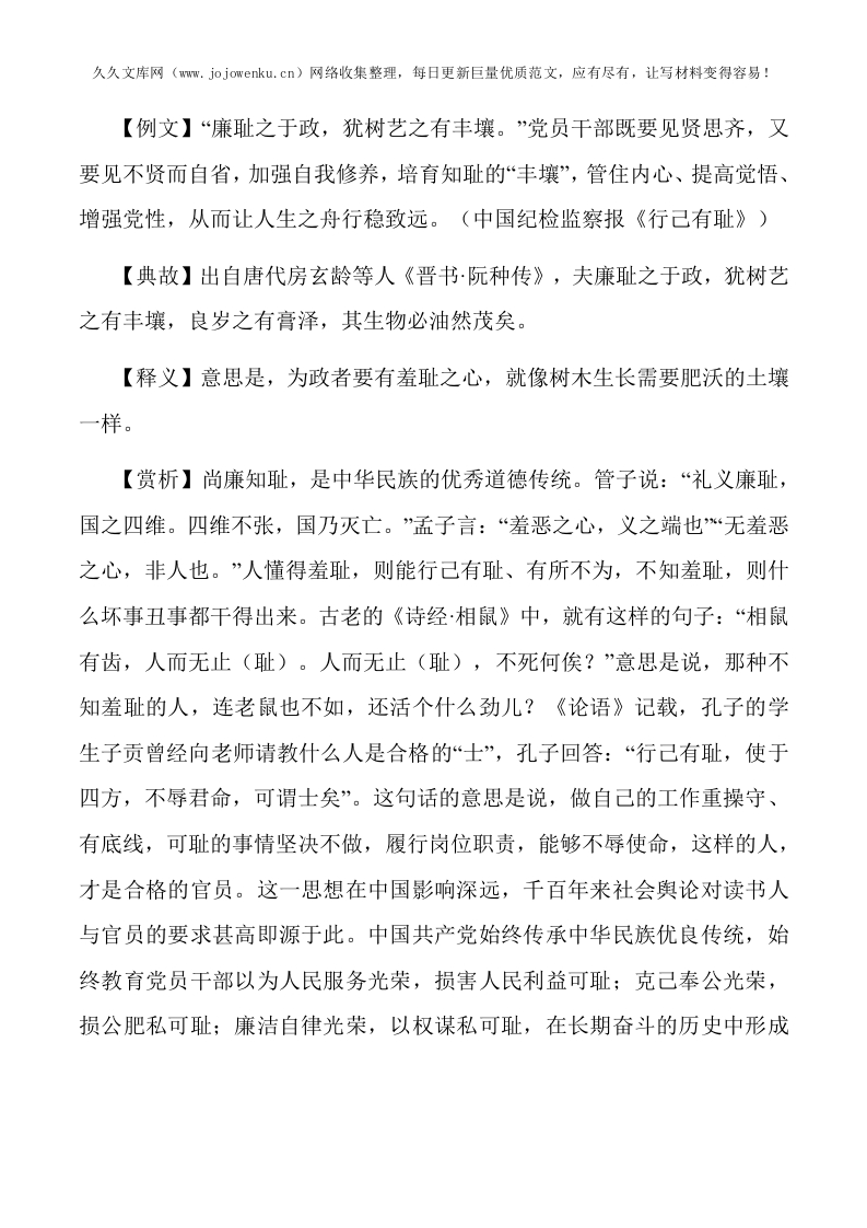【写材料用典】廉耻之于政,犹树艺之有丰壤