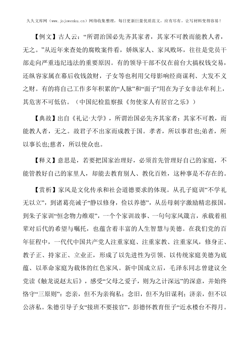 首页写作提升写作用典【写材料用典】所谓治国必先齐其家者,其家不可教而能教人者,无之