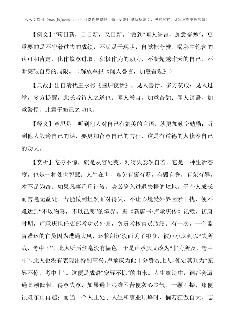 【写材料用典】闻人誉言,加意奋勉
