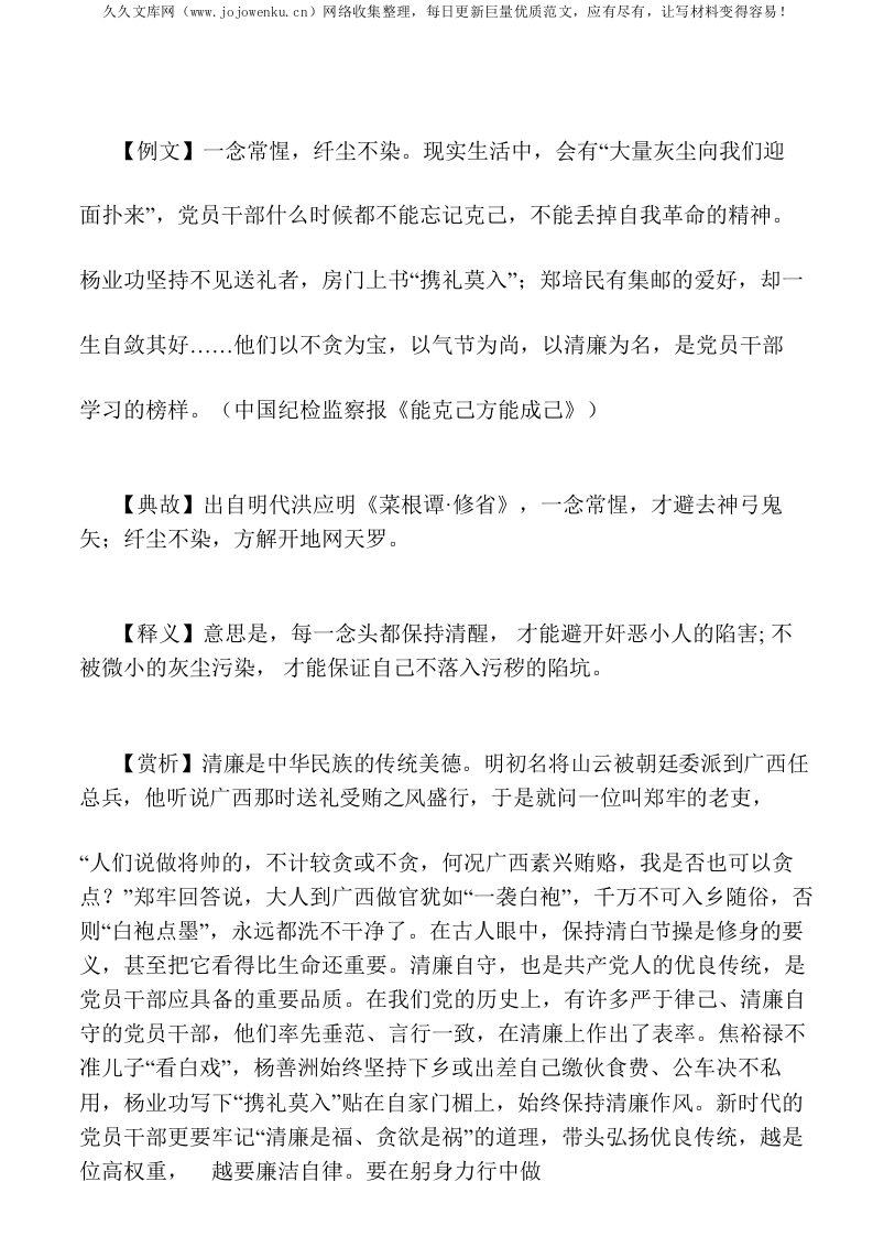 首页写作提升写作用典【写材料用典】一念常惺,纤尘不染