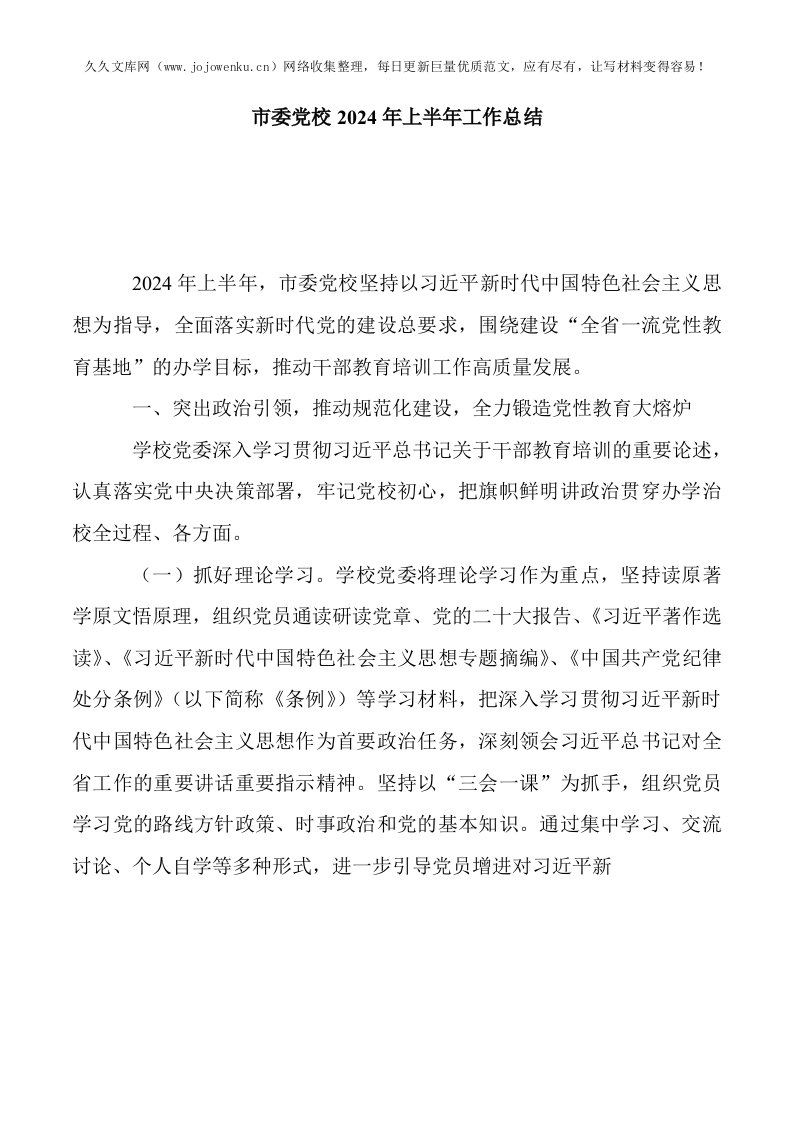 首页公文大全总结报告总结市委党校2024年上半年工作总结