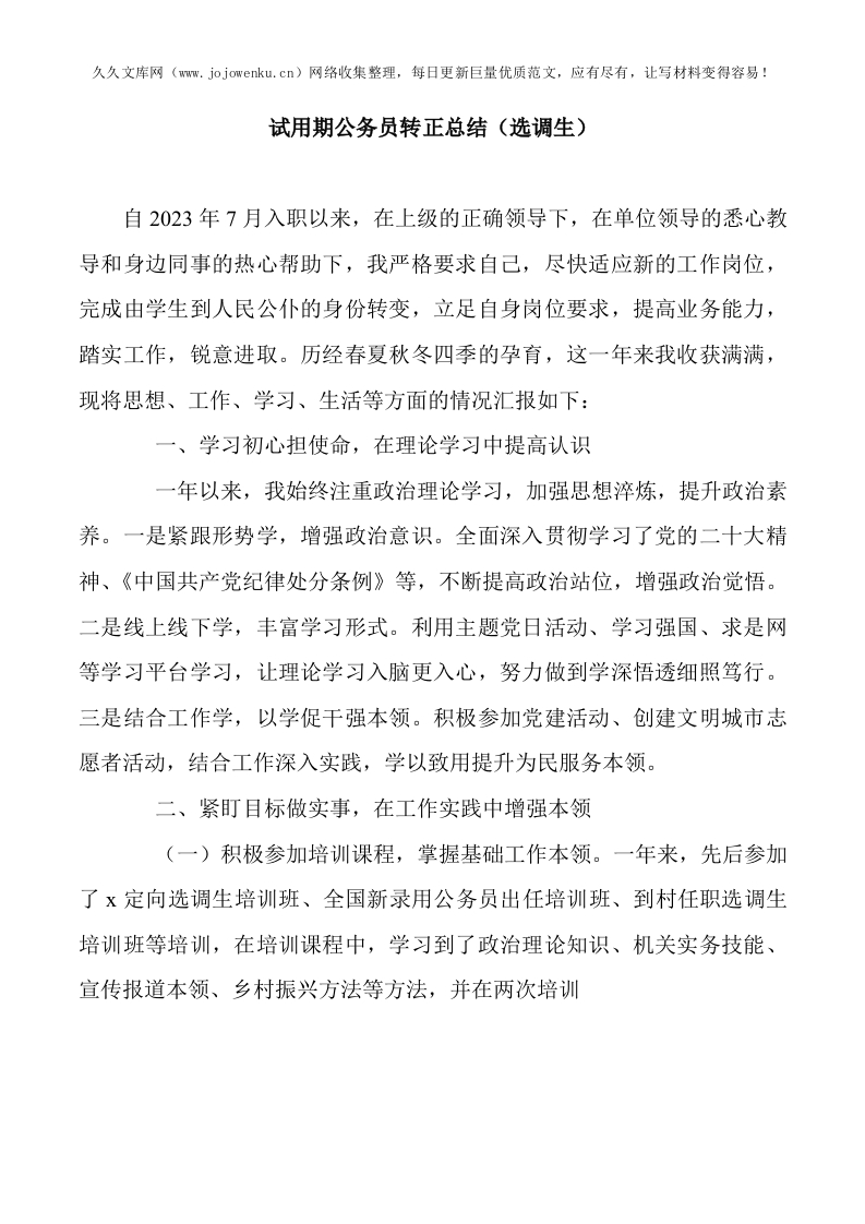 首页公文大全总结报告总结试用期公务员转正总结(选调生)