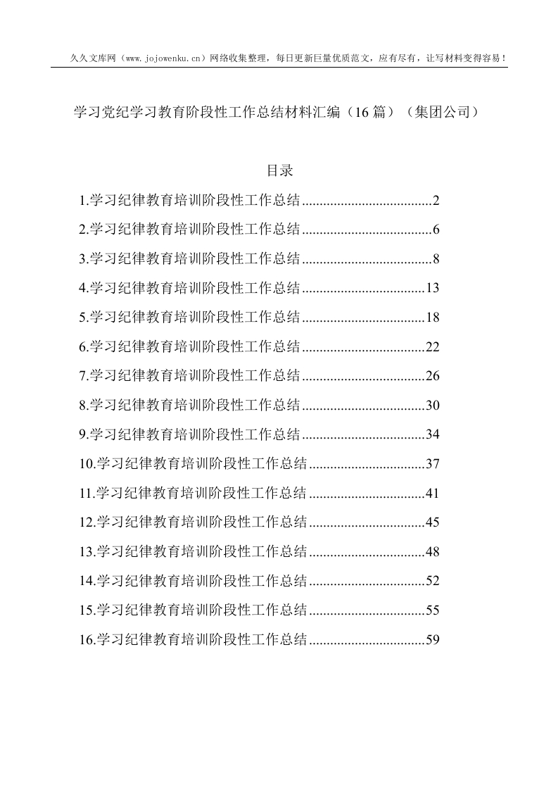 学习党纪学习教育阶段性工作总结材料汇编(16篇)(集团公司) (1)