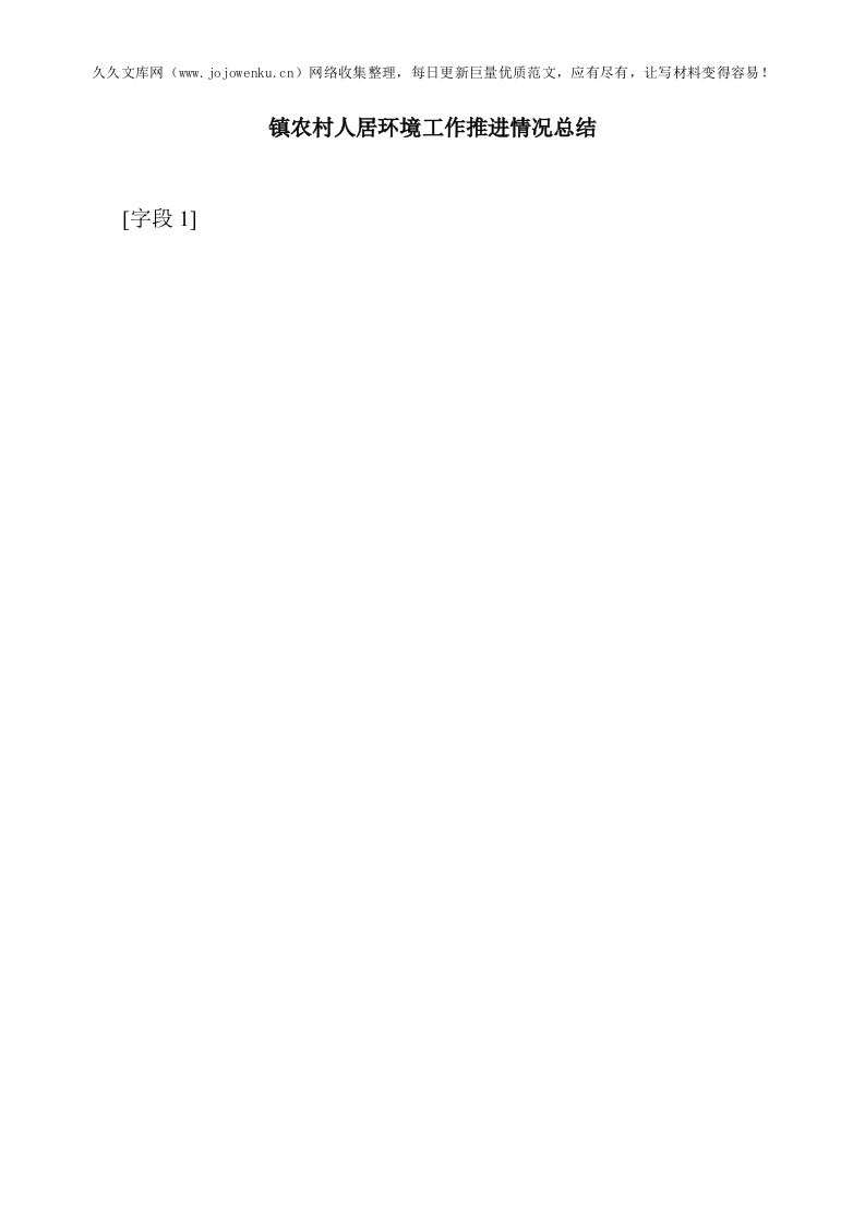 镇农村人居环境工作推进情况总结