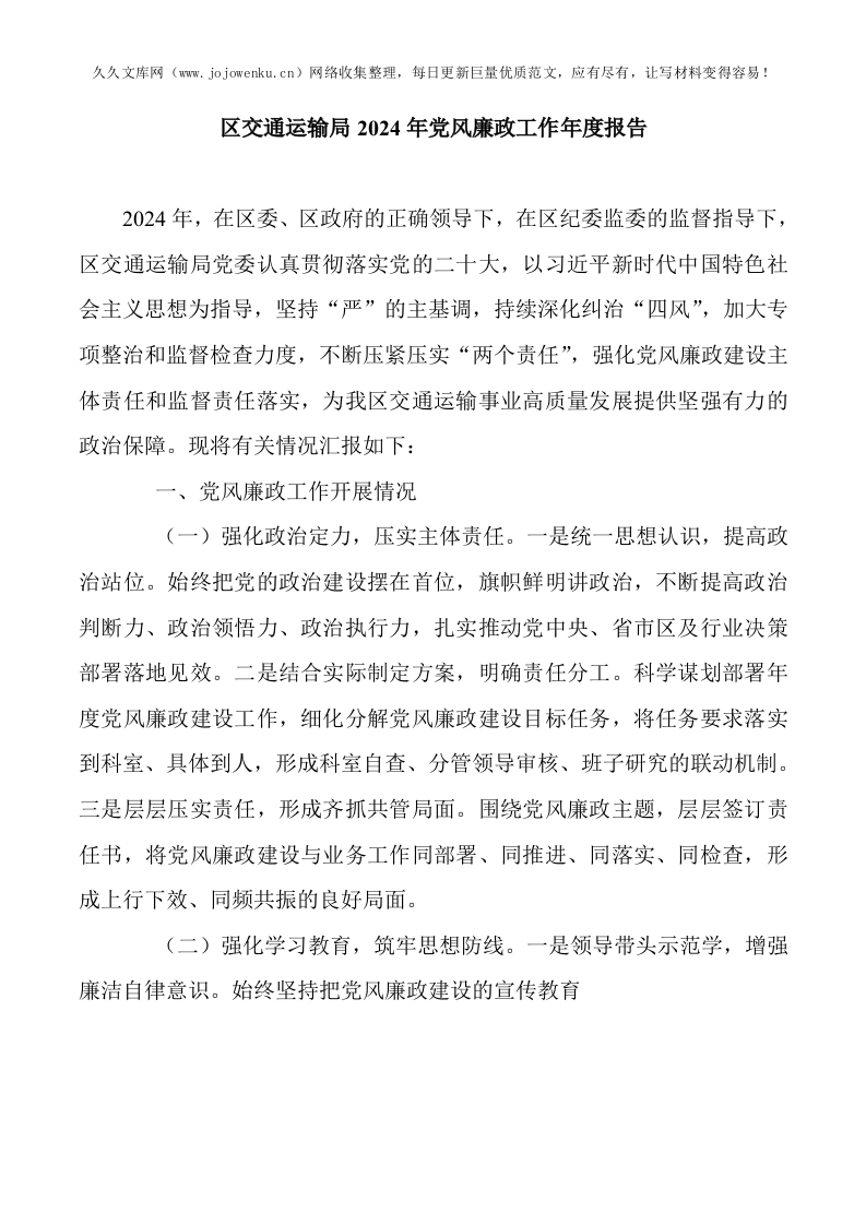 首页公文大全总结报告报告区交通运输局2024年党风廉政工作年度报告