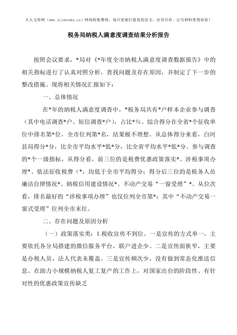 首页公文大全总结报告报告税务局纳税人满意度调查结果分析报告