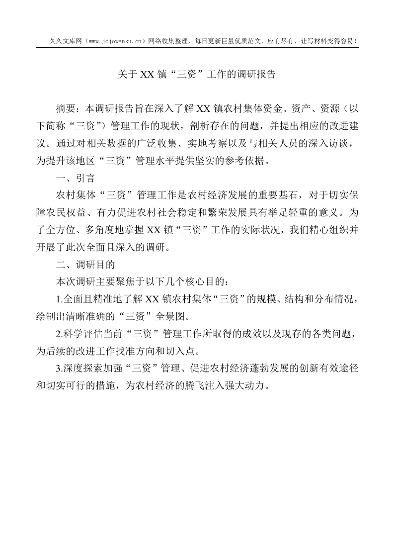 首页调查研究调研报告关于XX镇“三资”工作的调研报告