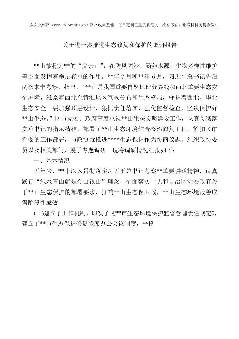首页调查研究调研报告关于进一步推进生态修复和保护的调研报告