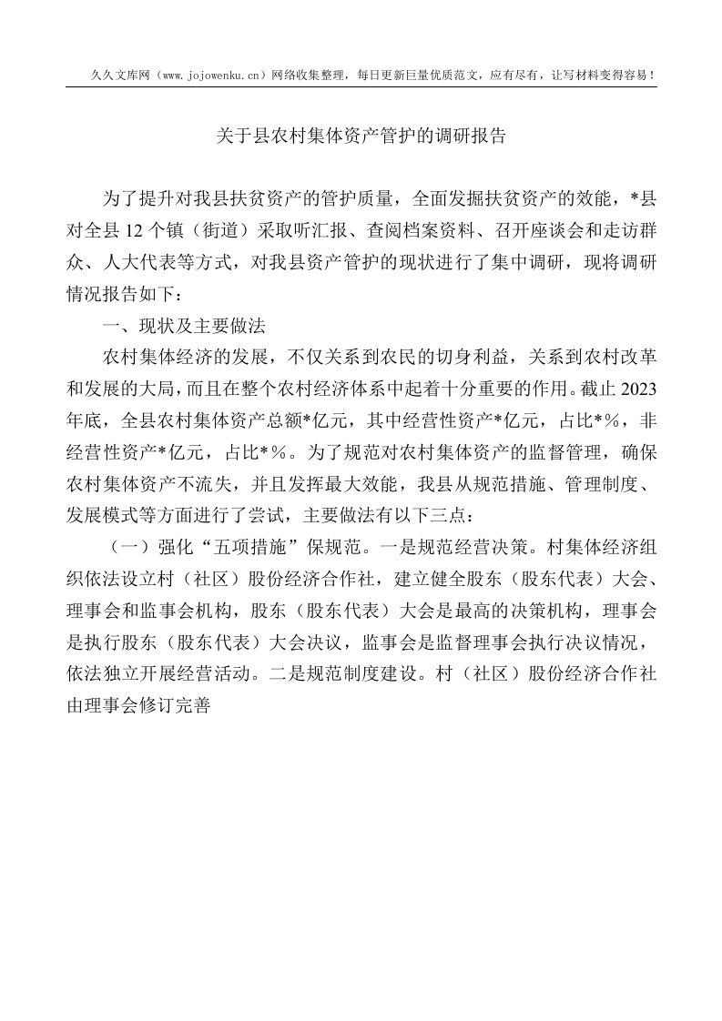 首页调查研究调研报告关于县农村集体资产管护的调研报告