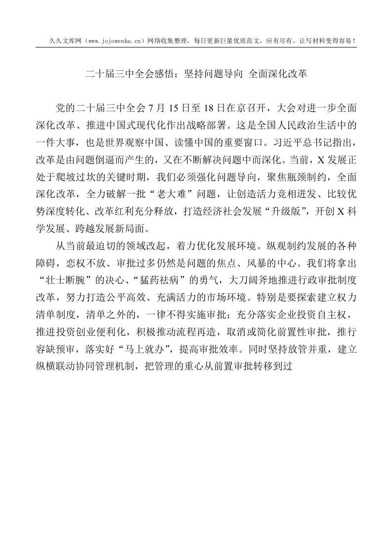首页公文大全心得体会二十届三中全会感悟:坚持问题导向+全面深化改革
