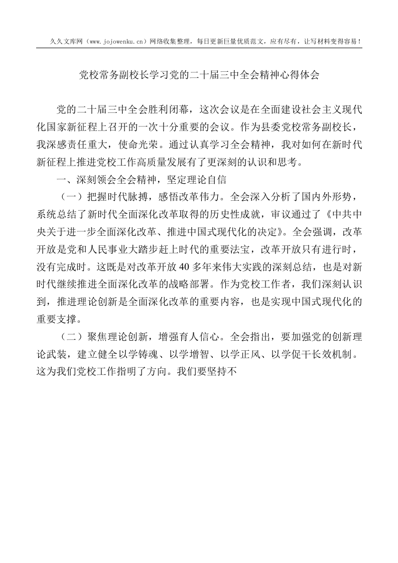 党校常务副校长学习党的二十届三中全会精神心得体会